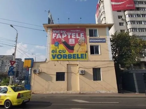 FOTO PSD a montat un banner electoral chiar pe sediul PNL Iași. Ironic cu liberalii