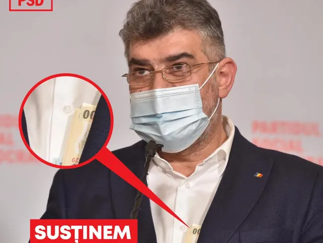 Fotografia cu banii lui Ciolacu, ieșind din sacou, virală