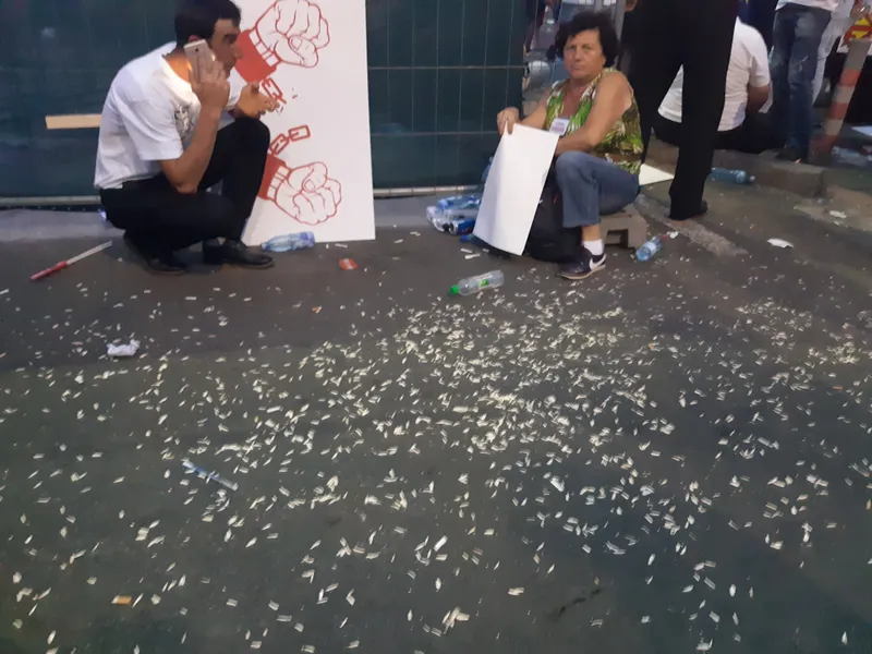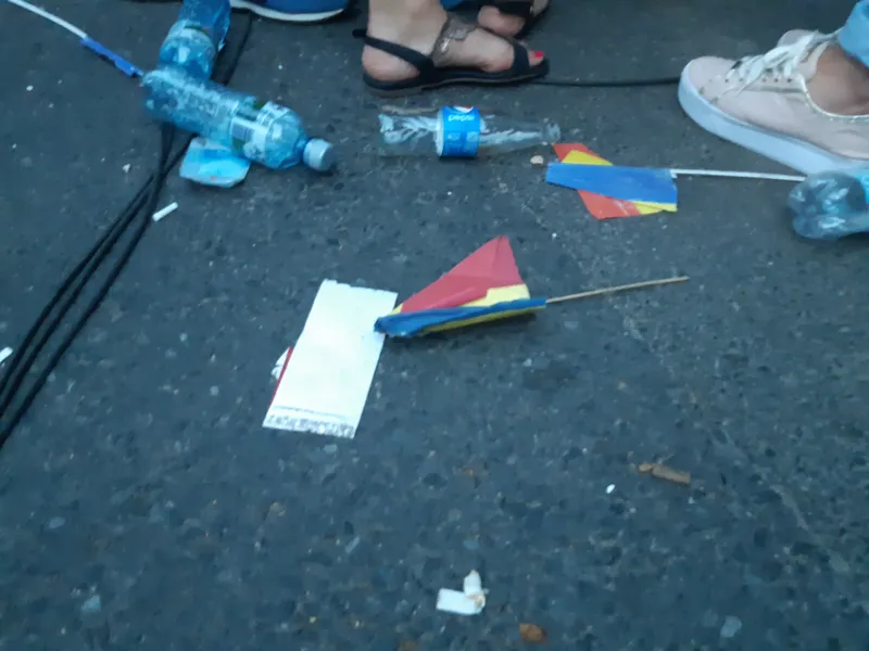 FOTO+VIDEO Mii de sticle, stegulețe și pancarte, abandonate în Piața Victoriei