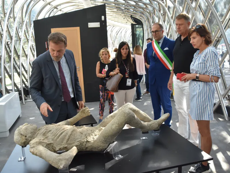 Cu câteva ore înainte de reuniunea Consiliului European, șeful statului român se afla în vizită la parcul arheologic din Pompei. Administrația parcului a postat imagini cu Iohannis și soția sa.