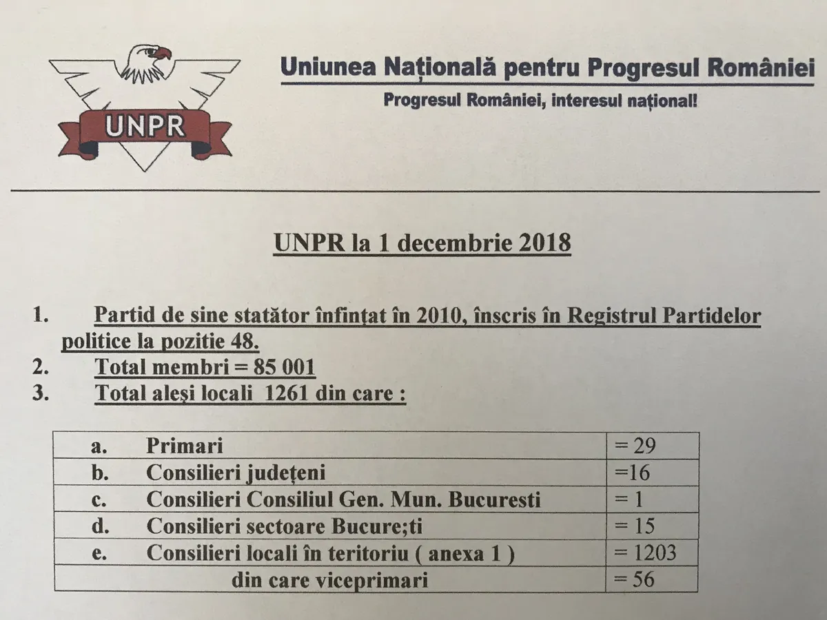 Generalul de carton Gabriel Oprea i-a promis Vioricăi Dăncilă că, dacă UNPR fuzionează cu PSD, îi aduce 190 de primari și viceprimari. De fapt, UNPR are doar 29 de primari și 56 de viceprimari. În plus, Oprea încearcă să "doneze" sediul UNPR, evaluat la 500.000 de euro.