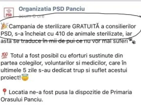 Gafă de proporții la PSD Panciu: „Sterilizarea gratuită a consilierilor PSD, s-a încheiat”