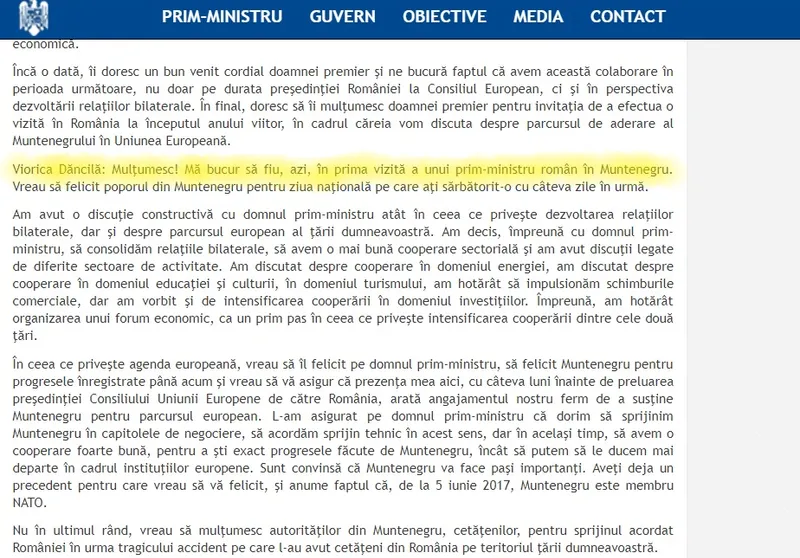 Gafa a fost făcută chiar în debutul conferinței de presă când premierul Dăncilă a spus: „Mă bucur să fiu astăzi la Pristina, în prima vizită a unui prim-ministru român în Muntenegru".