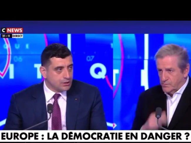 Moderatorul francez l-a avertizat că asemenea afirmații ar putea dăuna relațiilor diplomatice, însă Simion a continuat: „Este foarte grav. Noi nu suntem Iran, o țară unde un ayatollah spune cine poate candida. Este cazul dumneavoastră în Franța, unde Marine Le Pen a fost interzisă de niște judecători.”