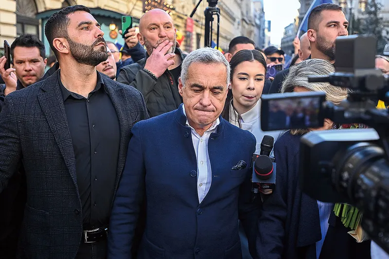 Călin Georgescu, înconjurat de bodyguarzi, la sediul Biroului Electoral Central - Foto: INQUAM PHOTOS/ Eduard Vînătoru
