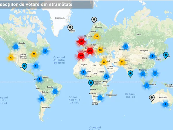 HARTA INTERACTIVĂ a secțiilor de votare din străinătate