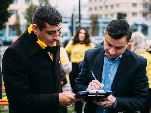 “Un independent pentru un alt independent! Primarul municipiului Iași, Mihai Chirica, colectează semnături pentru candidatul independent la alegerile europarlamentare George Simion.