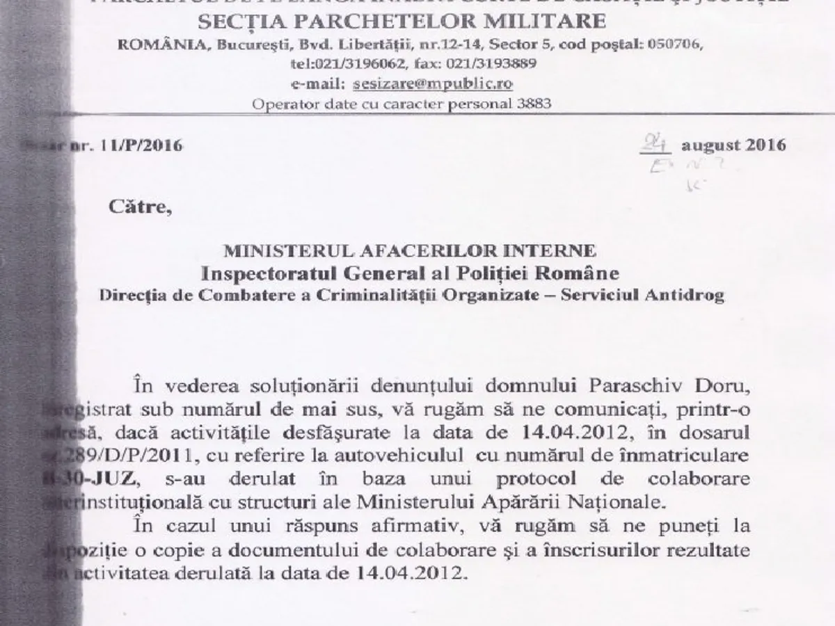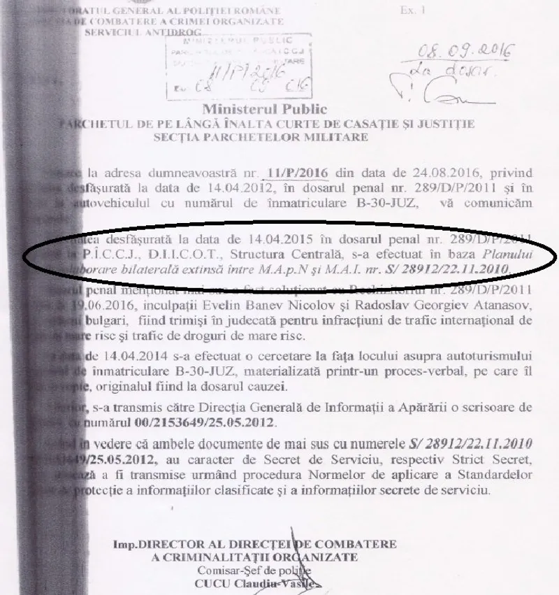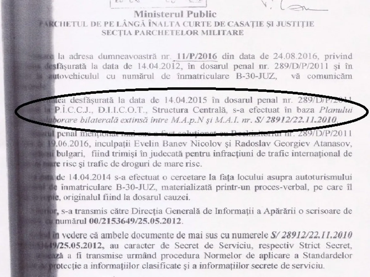 Așadar, MApN a avut un astfel de protcol încheiat și cu Ministerul de Interne, intitulat Plan de colaborare bilaterală extinsă între MApN și MAI, ce poartă numărul S/28912/22.11.2010. Existența lui este menționată într-o corespondență oficială din anul 2016 între Parchetul de pe lângă Înalta Curte de Casație și Justiție- Secția Parchetelor Militare și Ministerul Afacerilor Interne- Direcția de Combatere a Criminalității Organaizate- Serviciul Antidrog.