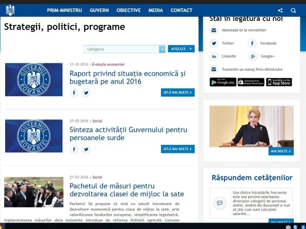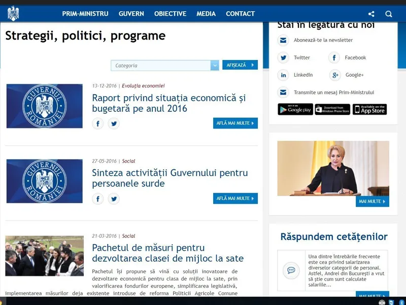 Ultimul subcapitol se numește „Strategii, politici, programe” unde sunt abordate problematici tot din urmă cu doi ani. Aici regăsim: „Raport privind situația economică şi bugetară pe anul 2016”, dar și „Sinteza activității guvernului pentru persoanw surde” care datează din mai 2016.