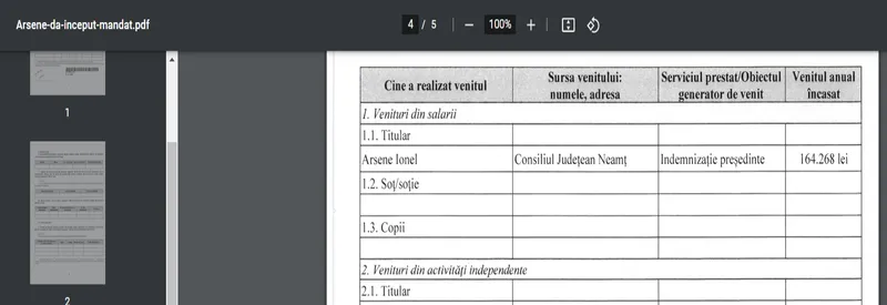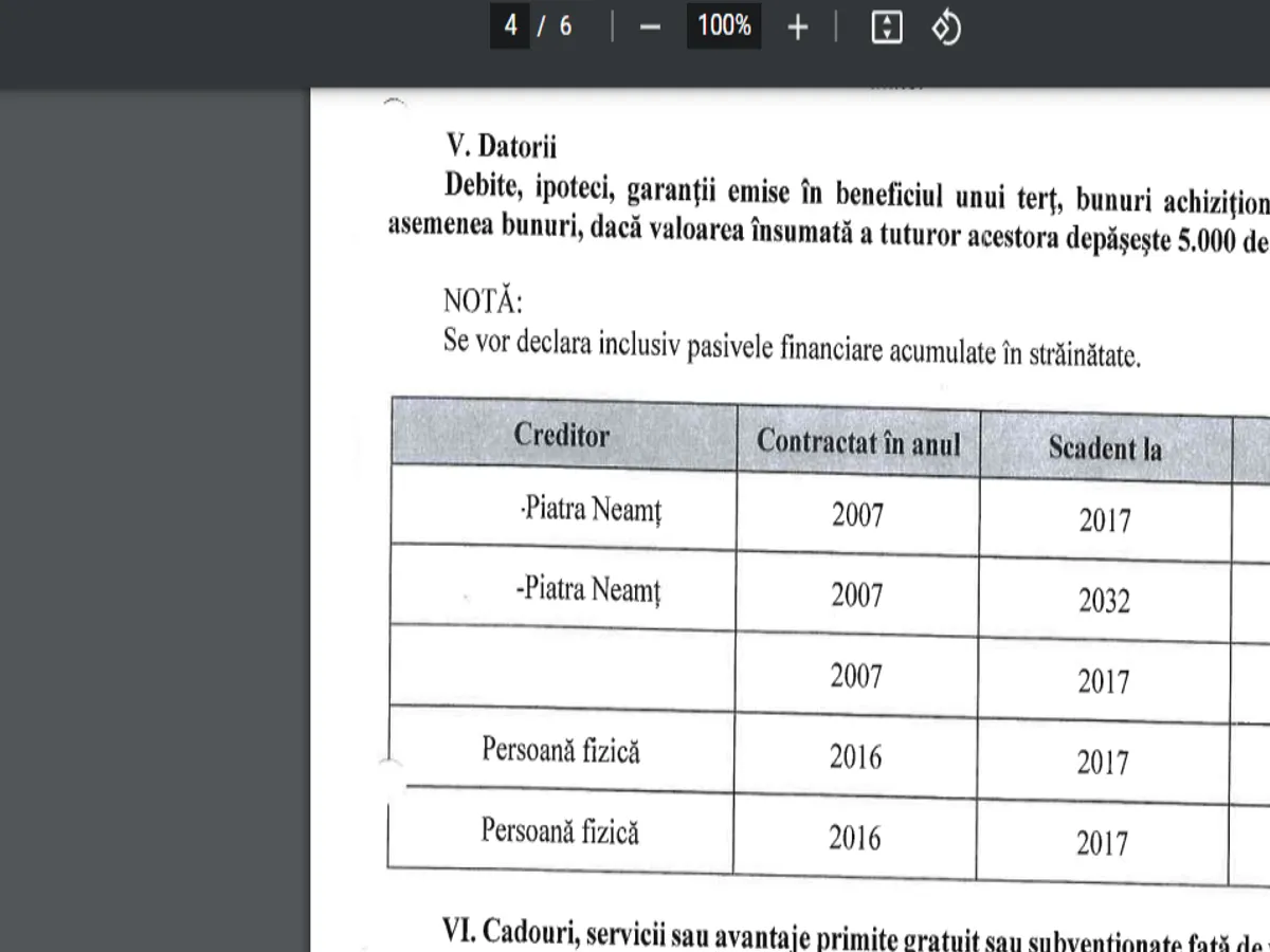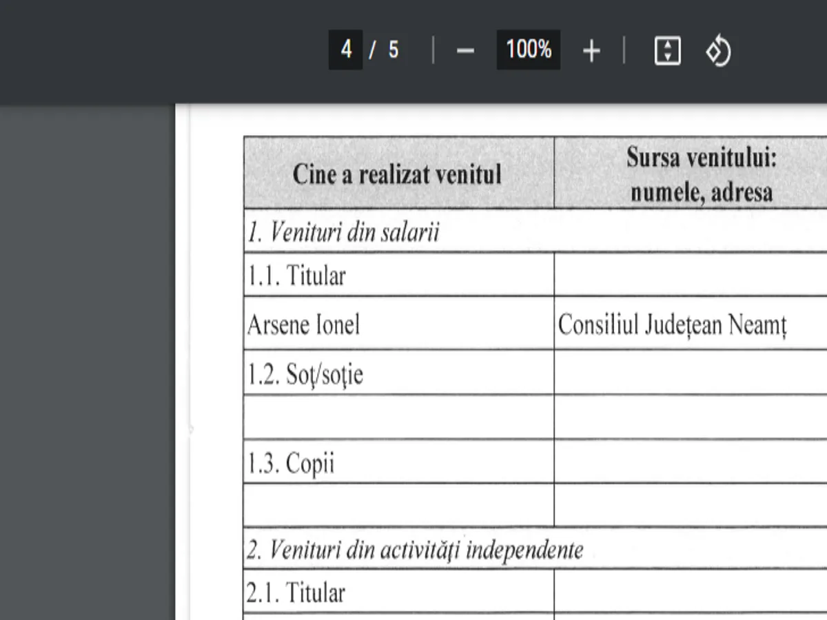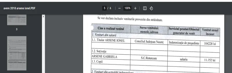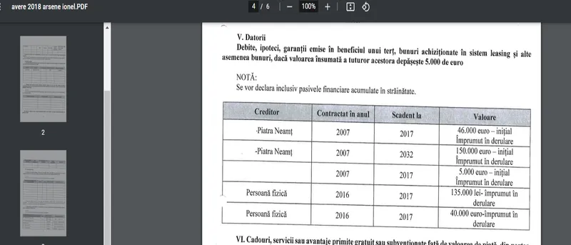 Arsene a câștigat 30.000 de euro ca președinte al Consiliului Județean Neamț. Cu acești bani el a plătit împrumuturi de aproximativ 103.000 euro.