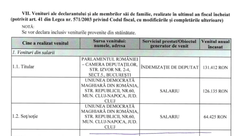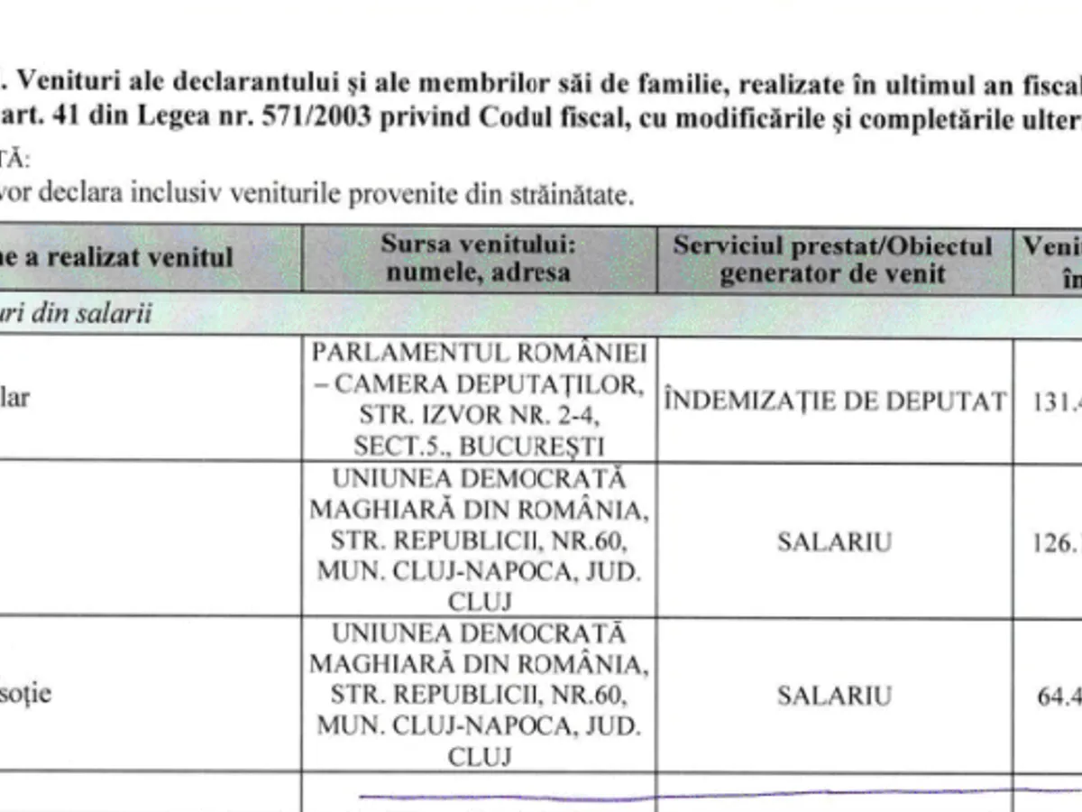Datele sunt publicate chiar de Kelemen în declarația de avere depusă anul acesta.