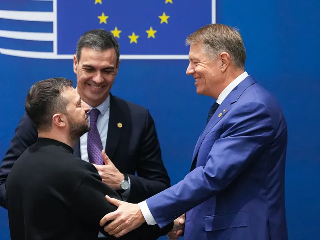 „Prezenţa preşedintelui Ucrainei Volodimir Zelenski astăzi, la reuniunea Consiliului European, este un semn al angajamentului şi sprijinului puternic european pentru Ucraina şi poporul său. Am reiterat sprijinul pe toate planurile, atât timp cât va fi nevoie", a scris preşedintele Iohannis, pe Twitter.
