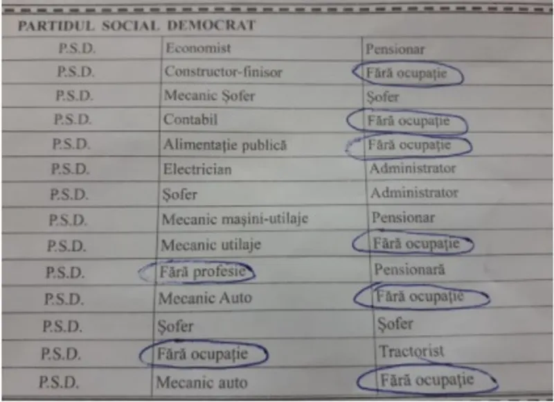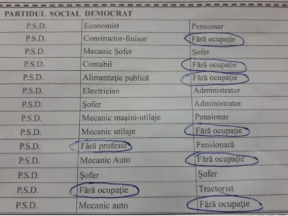 Semn că politica reprezintă, în special printre social-democrați, o modalitate de căpătuială, un mijloc de a parveni în societate. Astfel, șase din cei 14 candidaţi ai PSD sunt „fără ocupaţie”.