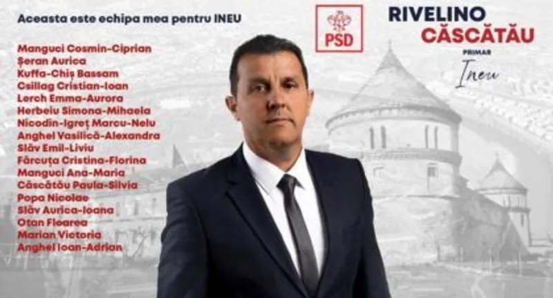 Aproape jumătate din lista PSD pentru consiliul local al orașului Ineu (jud. Arad) a fost populată cu rude ale candidatului la funcția de primar, Rivelino Căscătău.