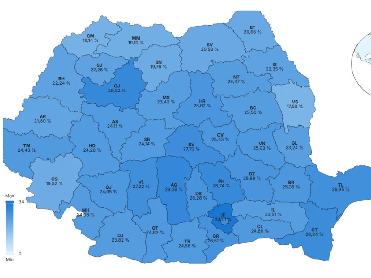 Ilfovul conduce în topul votanților din România. Până la această oră 34,01% reprezentând 146.147 de români și-au exprimat deja opțiunea la alegerile prezidențiale. În Capitală 26,47% dintre alegători au votat până la ora 12:40, reprezentând 473,510 bucureșteni.