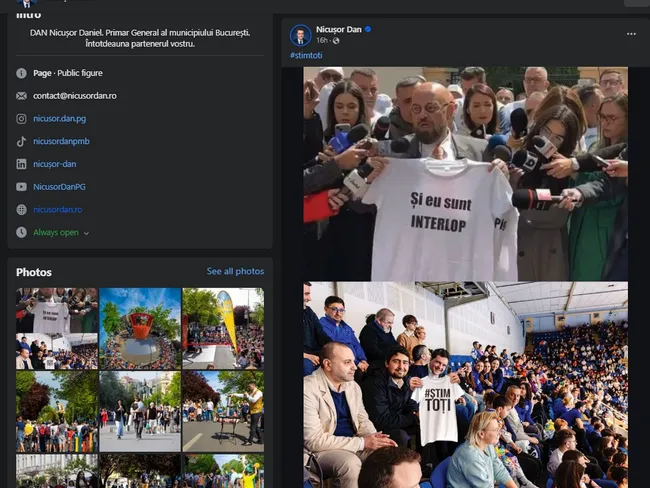 Primarul Capitalei, Nicuşor Dan, a postat pe pagina sa de Facebook o fotografie în care apare în tribune, la un meci, afişând un triopu cu mesajul: „Ştim Toţi!”, ca răspuns la mesajul de pe tricoul prezentat de primarul Sectorului 5, Cristian Popescu Piedone, la depunerea candidaturii pentru Primăria Generală, care avea ca mesaj: ”Şi eu sunt interlop”.