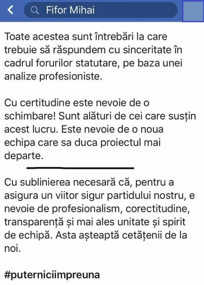 Inițial, Mihai Fifor și-a anunțat azi demisia din funcția de secretar general, pe Facebook, cerând, totodată, ca întreaga conducere a PSD să demisioneze, „ca o nouă echipă să ducă mai departe proiectul”.