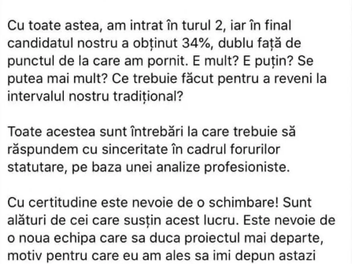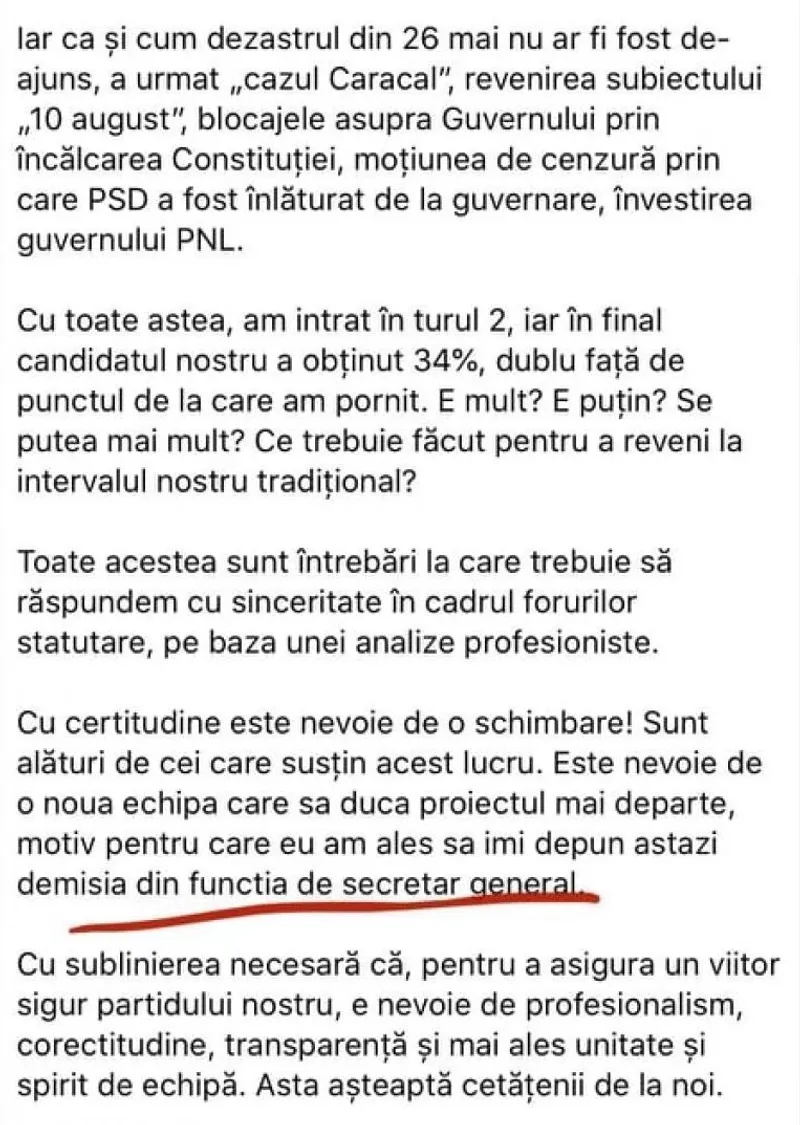 Ulterior a șters partea în care și-a dat demsia și a lăsat doar bucata în care cere demisia colegilor săi din conducere.