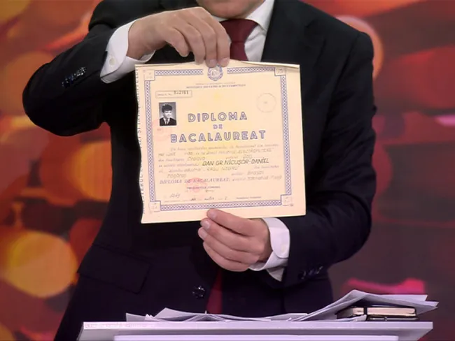 În cadrul acestei dezbateri organizate de Digi24 de la care candidatul prorus, George Simion a fugit, Nicușor Dan a venit cu diploma de Bacalaureat, pentru a contracara informațiile false care au tot circulat în ultimele zile pe rețelele sociale propagate de trolii Moscovei.