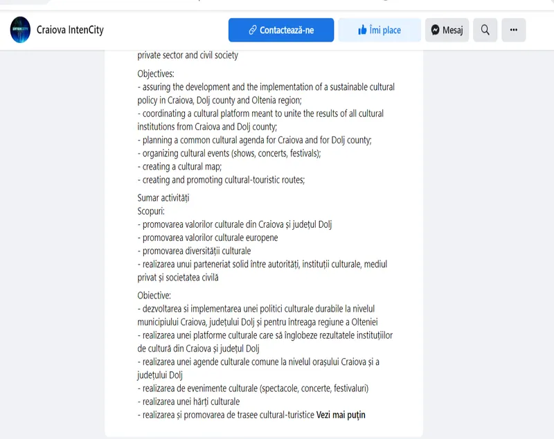 - promovarea valorilor culturale din Craiova și județul Dolj