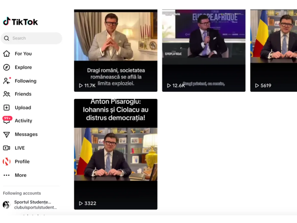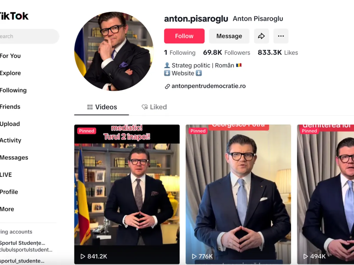 Interesant este faptul că, pe TikTok, Anton Pisaroglu este un "influencer" de succes, deși mai nimeni nu-l cunoaște. Cam la fel cum era Călin Georgescu înainte cu câteva săptămâni de alegerile prezidențiale.
