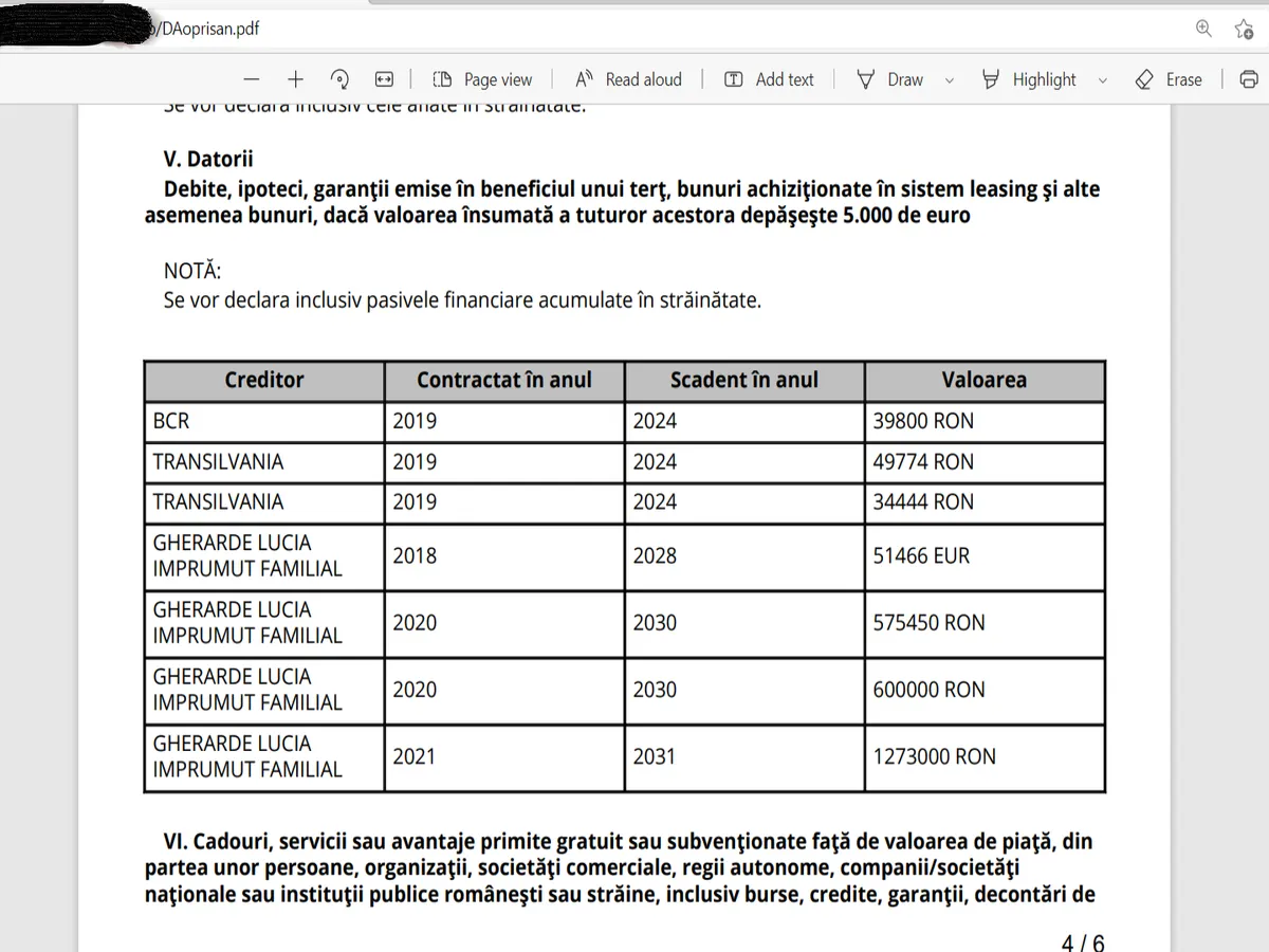 Dar Oprișan mai are alte 6 credite pe care le prezentăm mai jos. Dacă nu ar plăti nicio dobândă, Oprișan ar avea de returnat, anual, suma de 56.200 de lei. Doar că trei credite sunt la bănci, iar alte patru la mama sa. Cu o dobândă modică, ar urma ca Oprișan să returneze suma de 70.000 de lei.