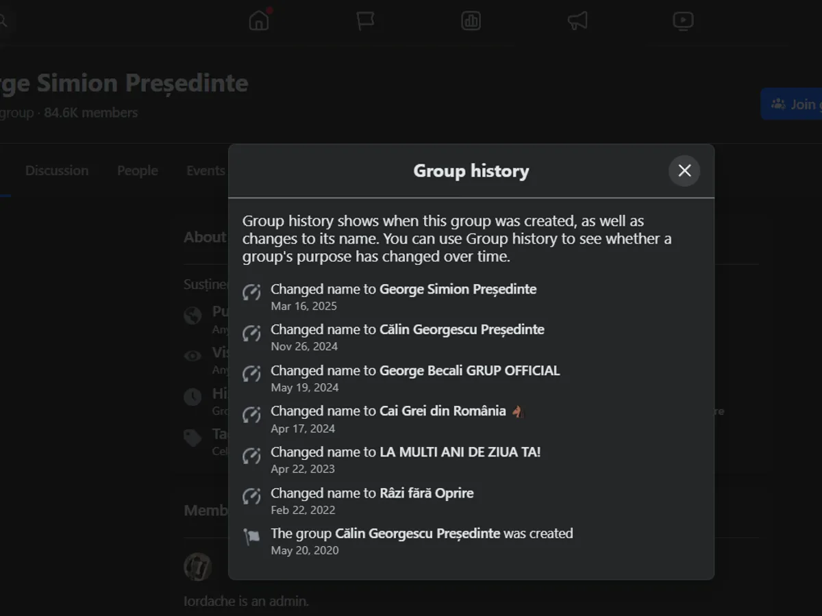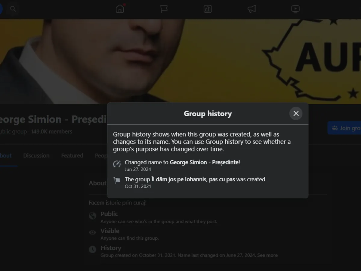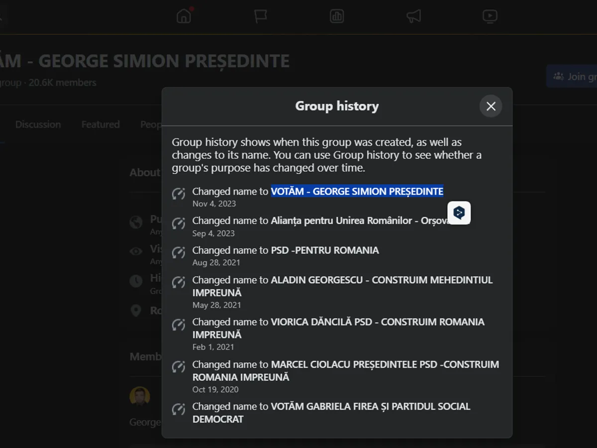 Un alt grup de Facebook denumit acum„Votăm George Simion Președinte”, care adună aproape 21.000 de urmăritori are în spate o istorie pesedistă profundă.