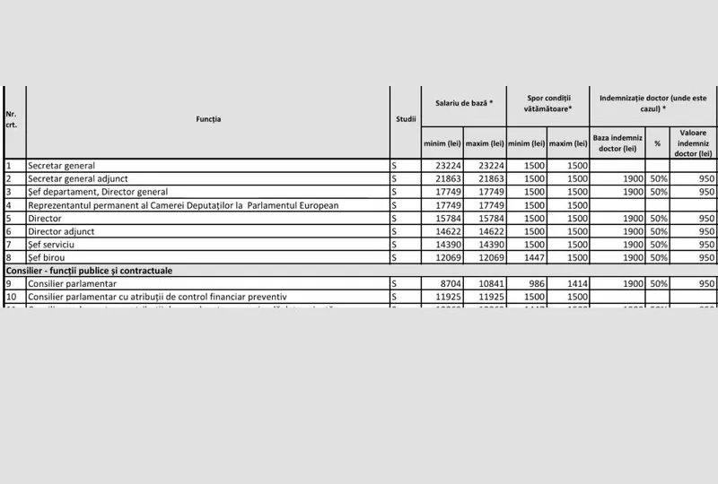 Citește și: Dezmăț în Parlament unde 110 directori și șefi primesc 15.000 lei/lună plus sporuri de 2.000 lei