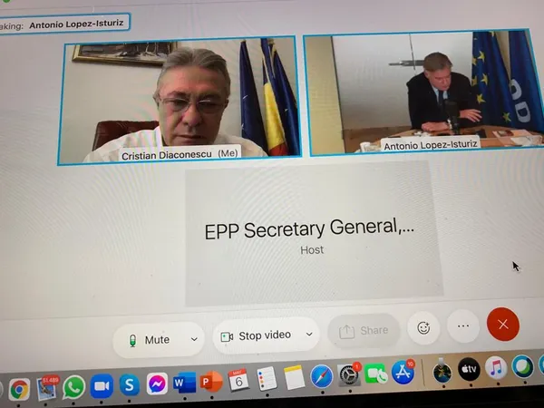 Președintele Partidului Mișcarea Populară, Cristian Diaconescu, și secretarul general al Partidului Popular European, Antonio Lopez-Isturiz White, au susținut joi o videoconferință. White l-a asigurat pe Diaconescu de totala susținere a PPE.