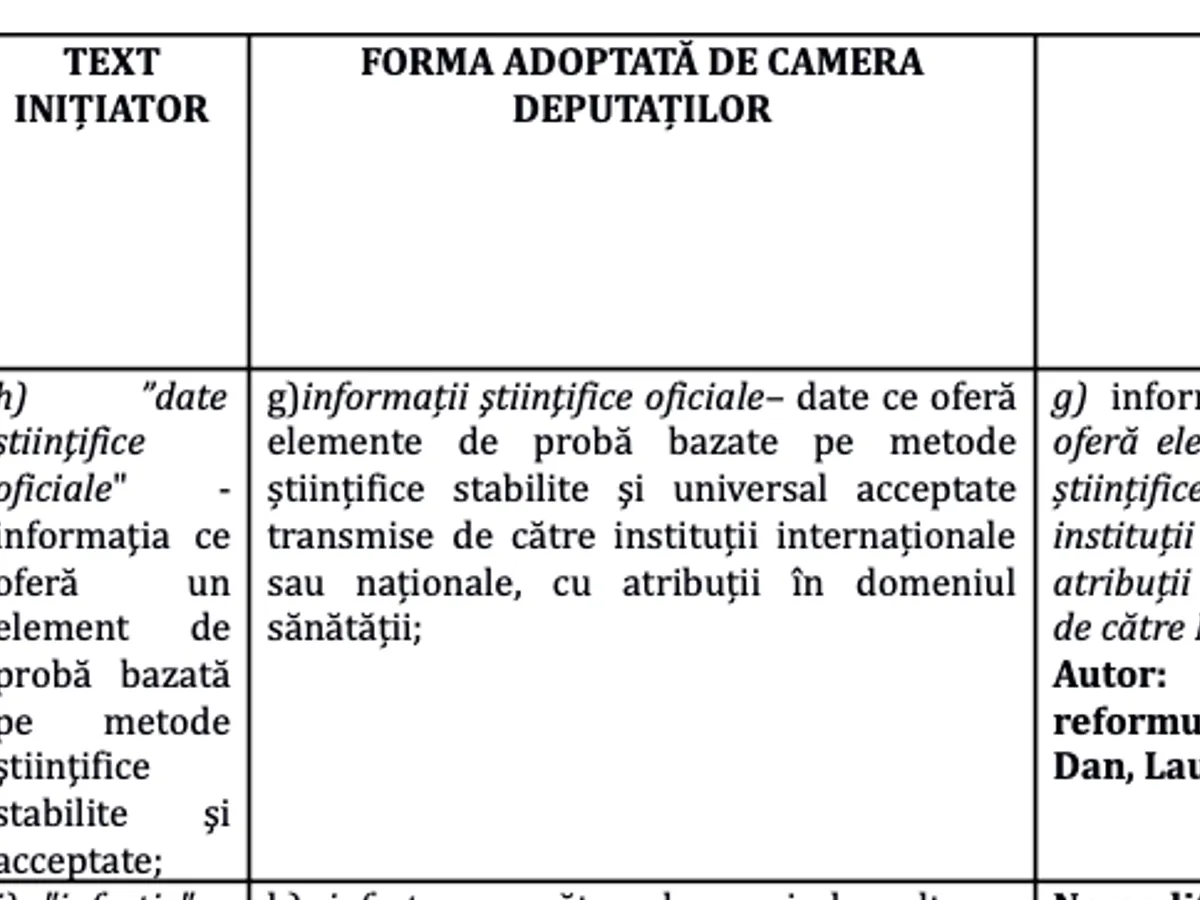 Ce s-a schimbat? În primul rând, au dispărut trei cuvinte: "şi universal acceptate". Deci, din punctul de vedere al Comisiei Juridice din Senat, metodele științifice trebuie doar "stabilite", nu "și universal acceptate".
