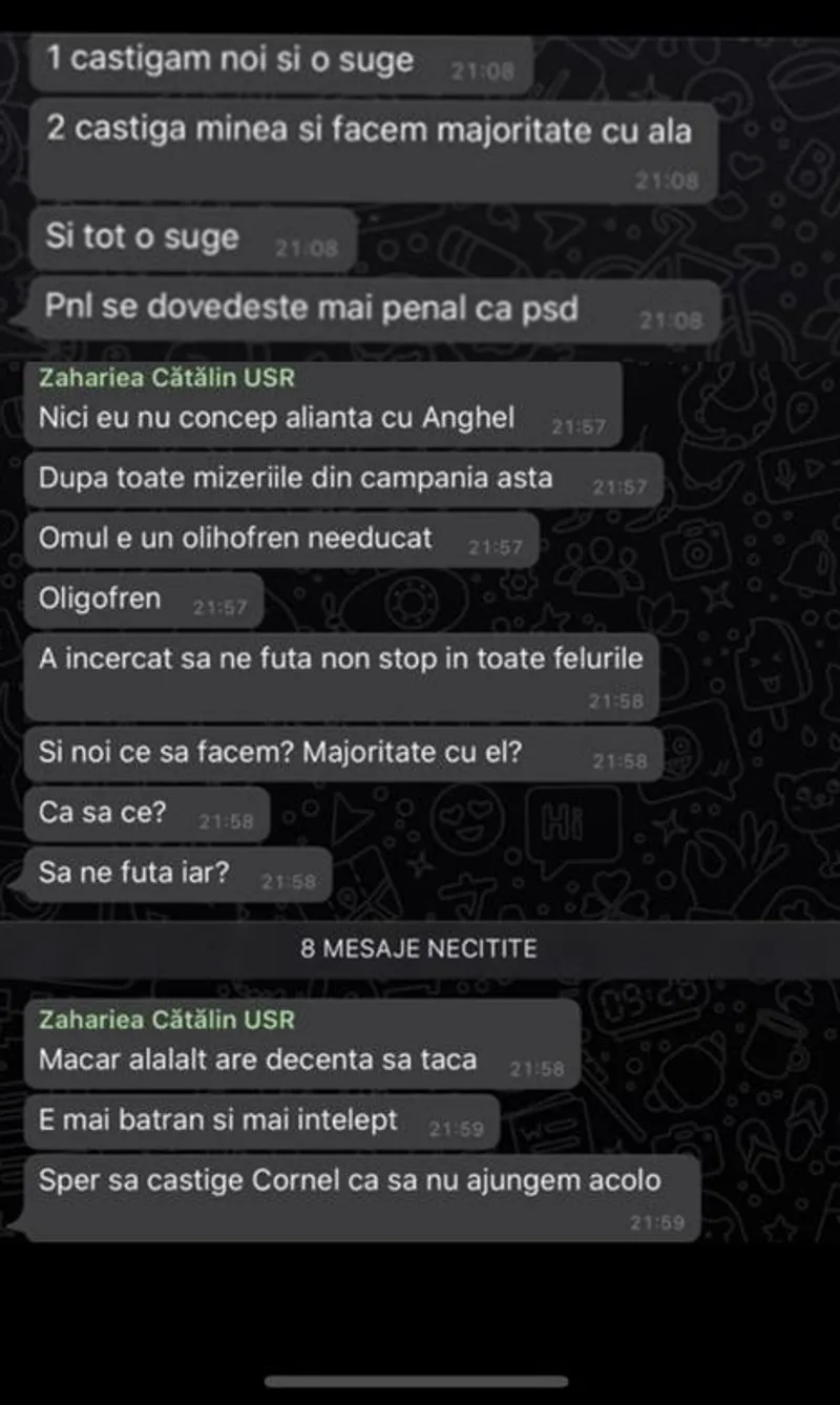 "Am primit pe adresa site-ului nostru mai multe copii ale discuțiilor interne de pe un grup USR, de la un membru care s-a scârbit de tehnicile pe care Cornel Zainea, dar și sponsorul și strategul lui, Cătălin Zaharia, le-au folosit în ultimele luni.
