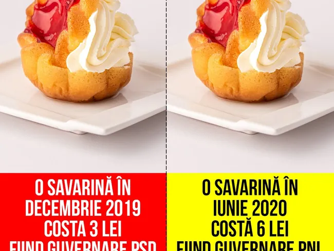 Postare virală a PSD Tismana: Savarina s-a scumpit de la 3 lei, sub PSD, la 6 lei, în regimul PNL