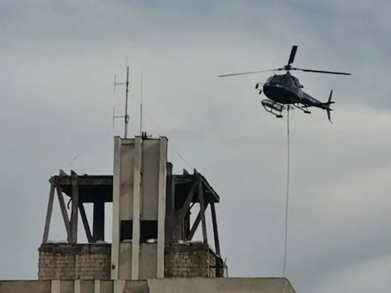 Romeo Dunca, președintele Consiliului Județean Caraș-Severin, a decis ca materialele de construcție necesare reparării acoperișului clădirii, Consiliului Județean să fie urcate cu elicopterul.
