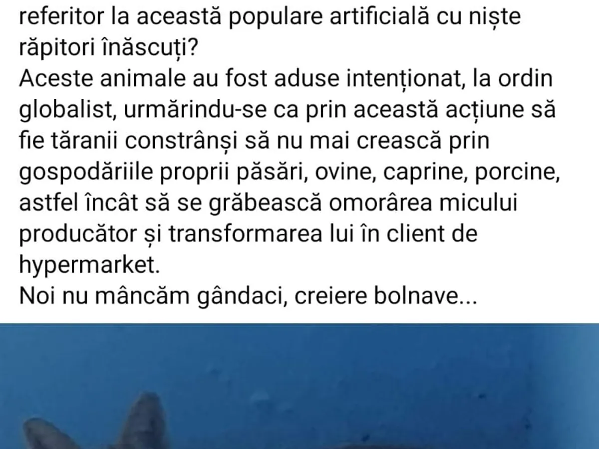 Aceste animale au fost aduse intenționat, la ordin globalist, urmărindu-se ca prin această acțiune să fie tăranii constrânși să nu mai crească prin gospodăriile proprii păsări, ovine, caprine, porcine, astfel încât să se grăbească omorârea micului producător și transformarea lui în client de hypermarket.