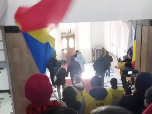 "Accesul le-a fost permis de Poliţia Locală, dar imediat au tulburat liniştea, prin scandări şi zgomote puternice. Poliţiştii locali care asigurau respectarea regulilor de acces în instituţie i-au scos din clădire şi au sesizat elementele de dispozitiv ale Jandarmeriei, aflate în imediata apropiere, într-o misiune de asigurare a ordinii publice. Persoanele au fost identificate şi urmează să fie sancţionate pentru nepurtarea măştii de protecţie şi tulburarea liniştii publice", precizează comunicatul Jandarmeriei Române.