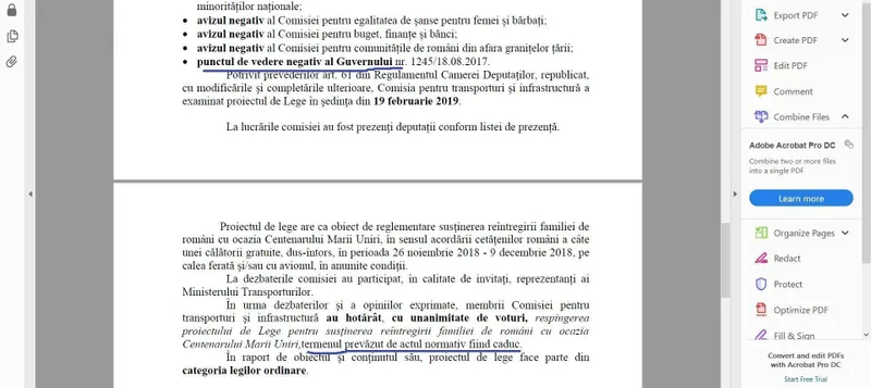 Proiectul de „Lege pentru susținerea reîntregirea familiei de români cu ocazia Centenarului Marii Uniri” ajuns în dezbatere abia la Comisia pentru transporturi și infrastructură din Camera Deputaților în februarie 2019.