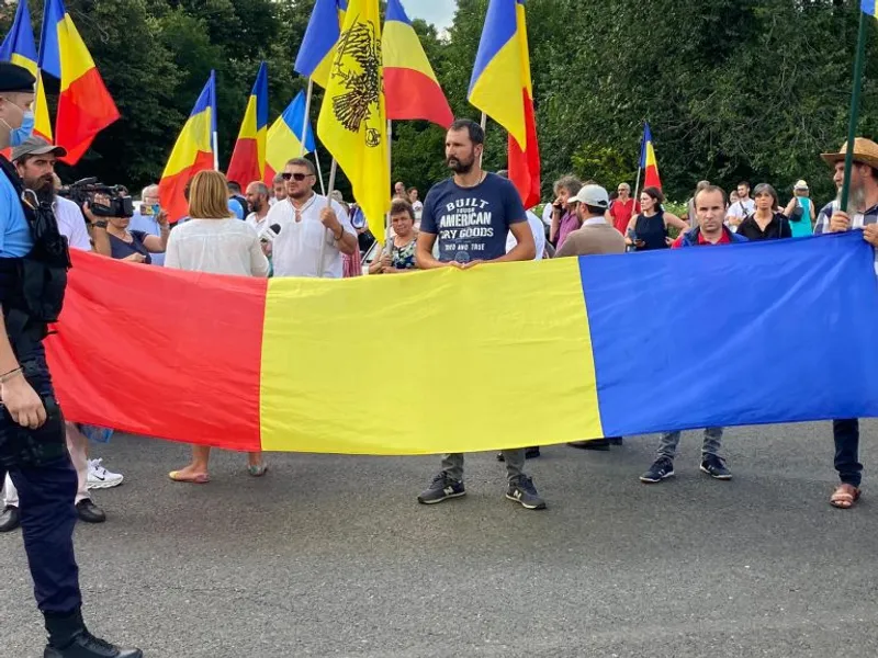 Protest în Piața Victoriei: Sute de oameni fără măști manifestează împotriva legii carantinării