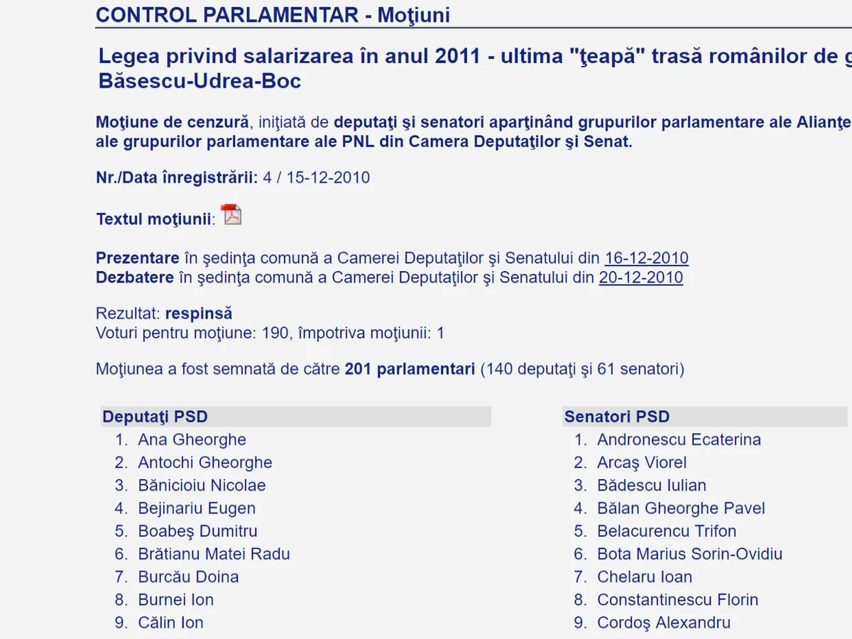 Nicolicea ia cuvântul și declară: „Grupul parlamentar al deputaţilor independenţi nu susţine această moţiune”. Potrivit cdep.ro, Moţiunea de cenzură a fost iniţiată de deputaţi şi senatori aparţinând grupurilor parlamentare ale Alianţei Politice PSD + PC şi ale grupurilor parlamentare ale PNL din Camera Deputaţilor şi Senat. Moțiunea a fost, în final, respinsă.