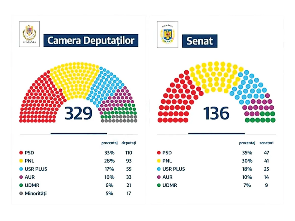 Viitorul guvern va fi condus de liberali, în coaliție cu USR PLUS și UDMR. Coaliția deține o majoritate care-i permite să adopte fără emoții legile organice (care necesită 50% plus unu din voturile tuturor parlamentarilor), dar nu va avea suficient sprijin pentru a modifica Constituția (care necesită două treimi din voturile parlamentarilor).