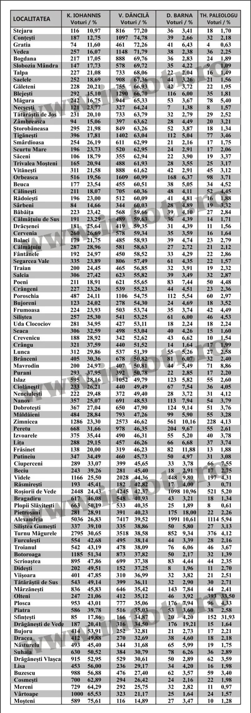 În Videle, Dăncilă a obținut 44%, Iohannis – 25%, iar dan Barna – 9%.