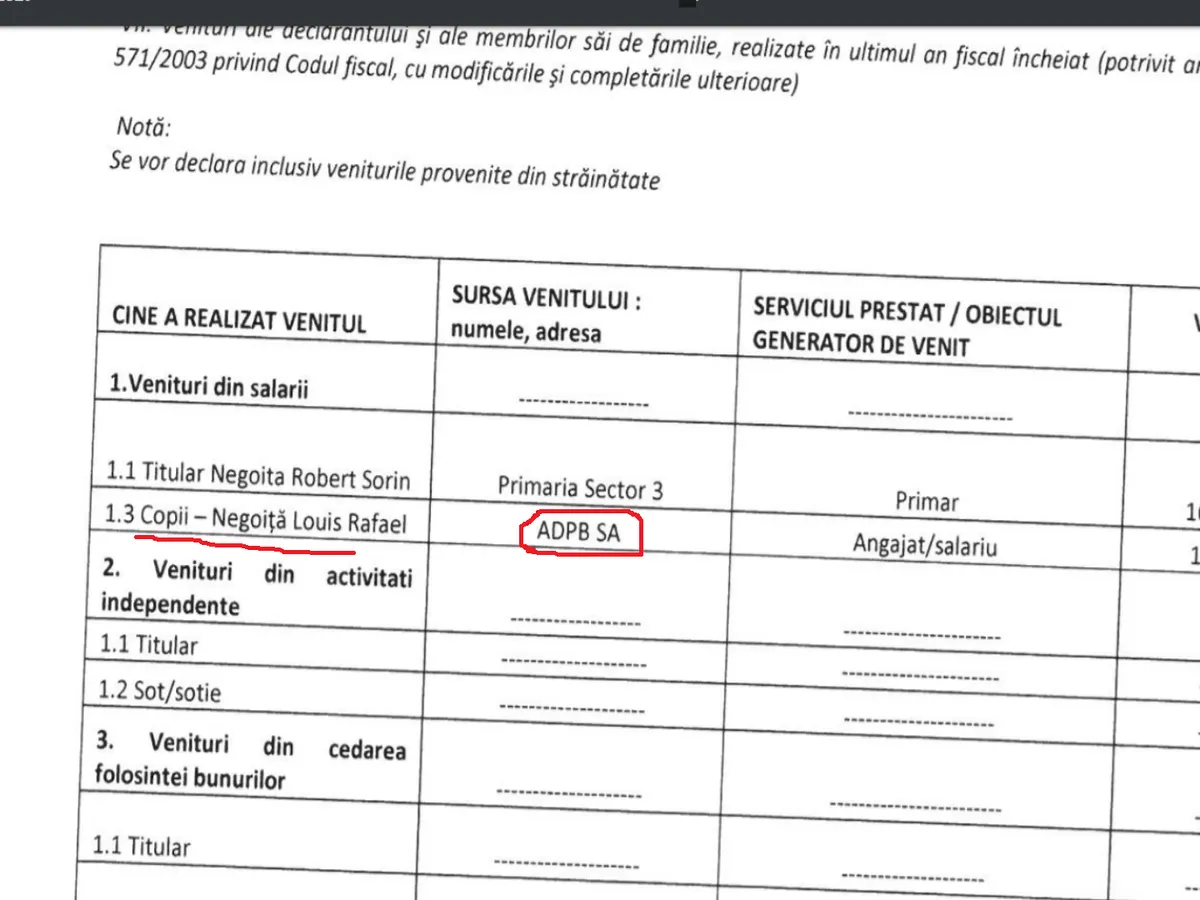 Nu putem calcula salariul, lunar, al fiului pentru că nu cunoaștem data la care Louis Rafael Negoiță s-a angajat într-o companie administrată de primăria tatălui său. Declarația de avere a lui Negoiță junior nu este de găsit pe portalul Agenției Naționale de Integritate și nici pe site-ul Administrarea Domeniului Public București S.A.
