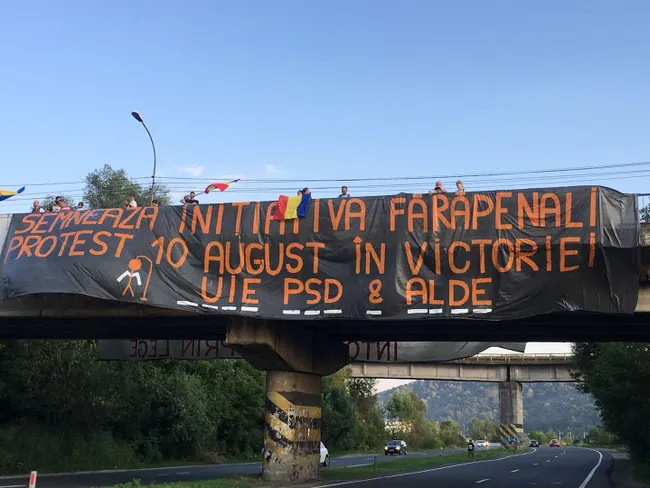 Luni dimineața, Cristian Mihai Dide a postat pe Facebook fotografia unui banner uriaș, întins pe o pasarelă de pe DN1, în zona Câmpina,