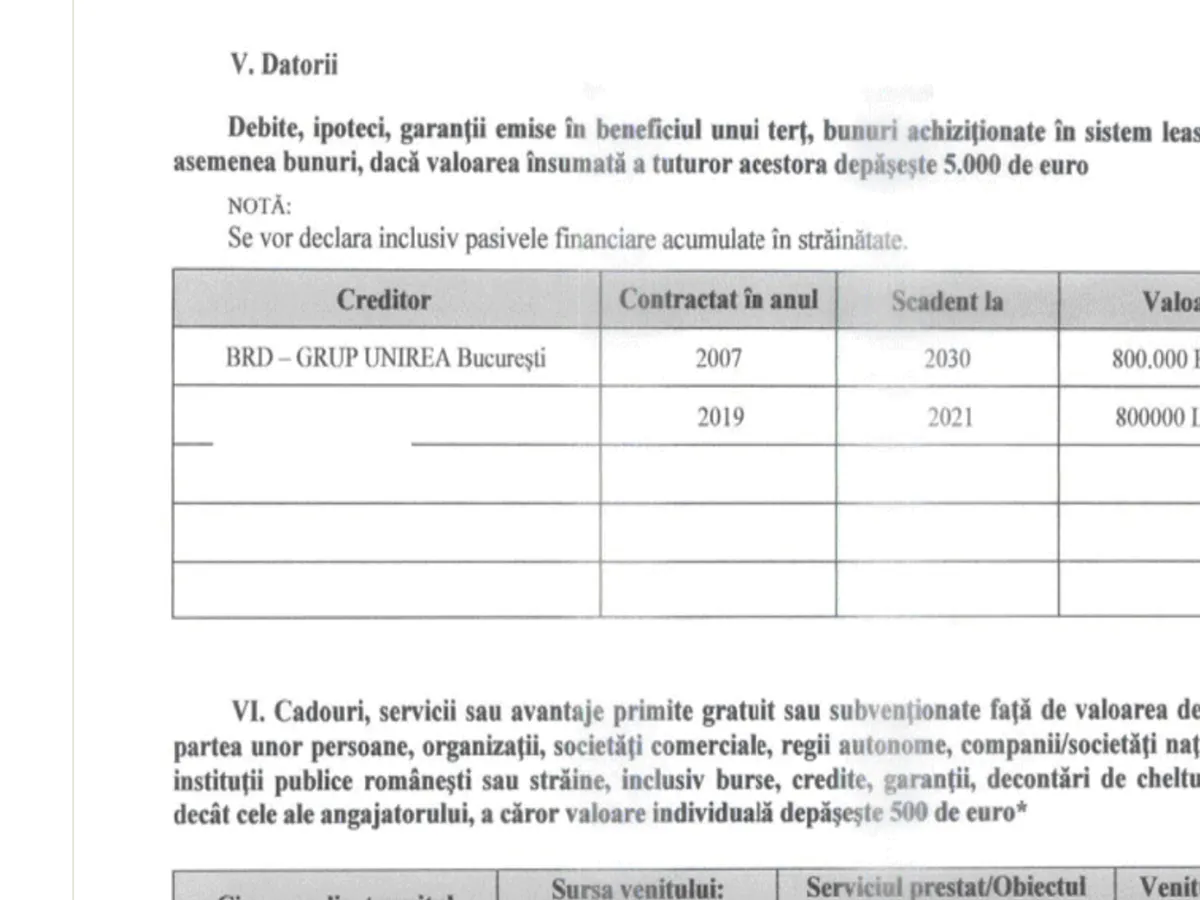 Asta nu este singura inadvertență din declarația de avere a Rovanei Plumb. Familia Rovanei Plumb trebuie să achite rate la un credit de 800.000 de euro pe care l-a luat în 2007 și care este scadent în 2030.