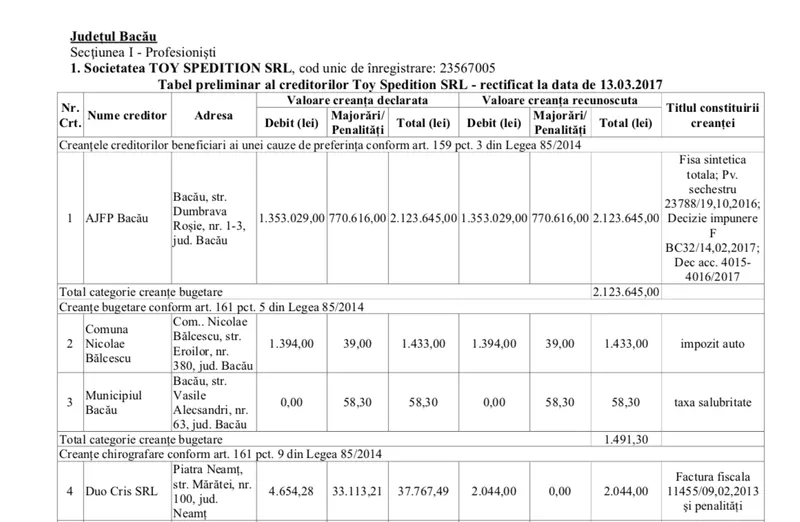Eliza Mastacan a fost și femeie de afaceri în orașul natal al lui Vlase. A deținut firma Toy Spedition SRL. Care, însă, a intrat în faliment și datorează Fiscului peste două milioane de lei, cam jumătate de milion de euro. Dar asta nu e problema doamnei Mastacan, care a cumpărat o casă de peste 70.000 de euro de la deputatul Vlase.