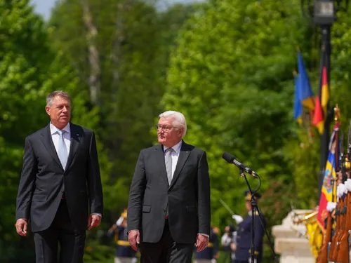 Klaus Iohannis l-a primit, joi, la Sibiu pe Frank-Walter Steinmeier, aflat într-o vizită oficială de câteva zile în România.