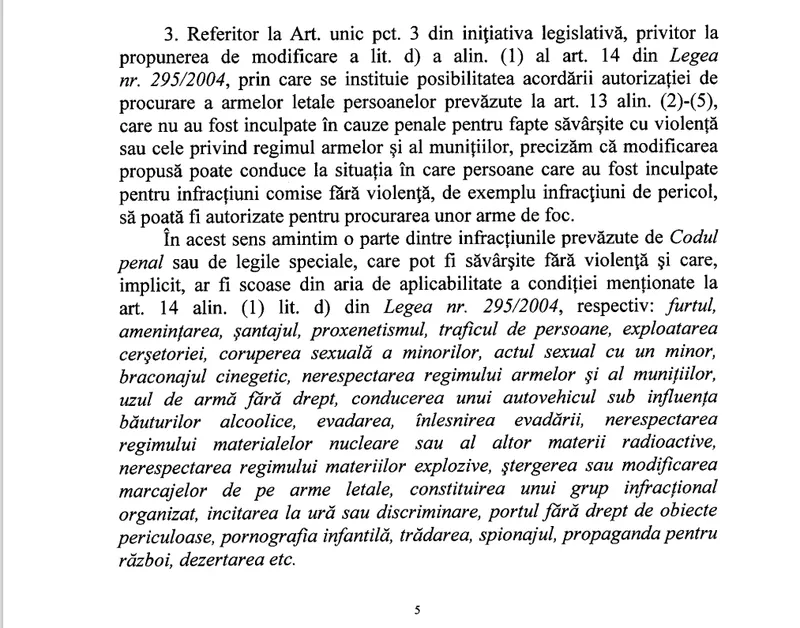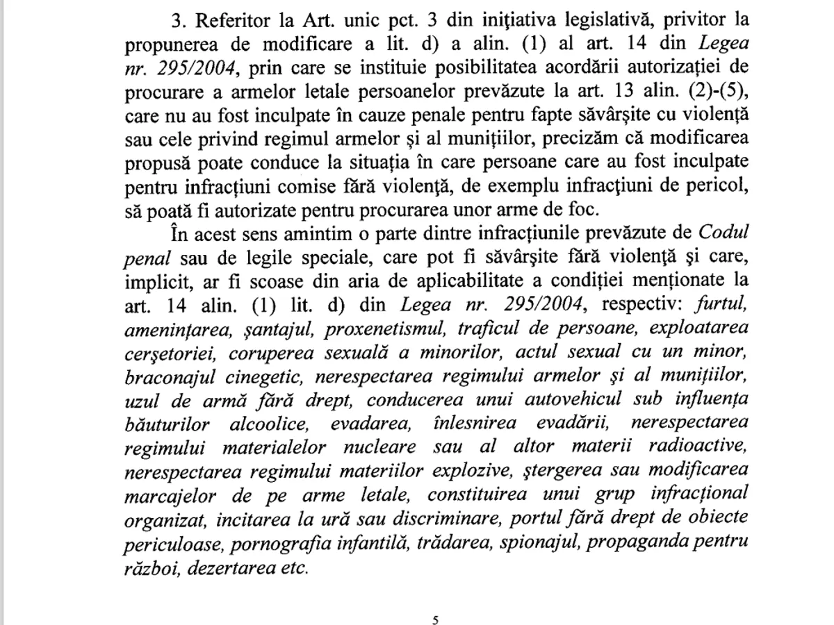 Guvernul, care a dat aviz negativ, a evidențiat exact acest aspect. Dacă oferi arme fără număr, vulnerabilizezi populația.