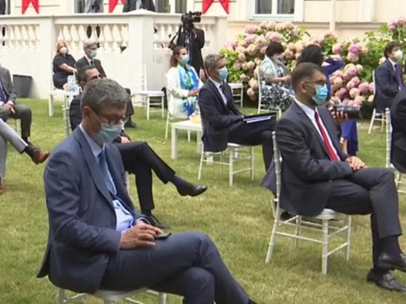 SFIDARE Marcel Ciolacu, singurul invitat la Ambasada Franței care nu a purtat mască de protecție