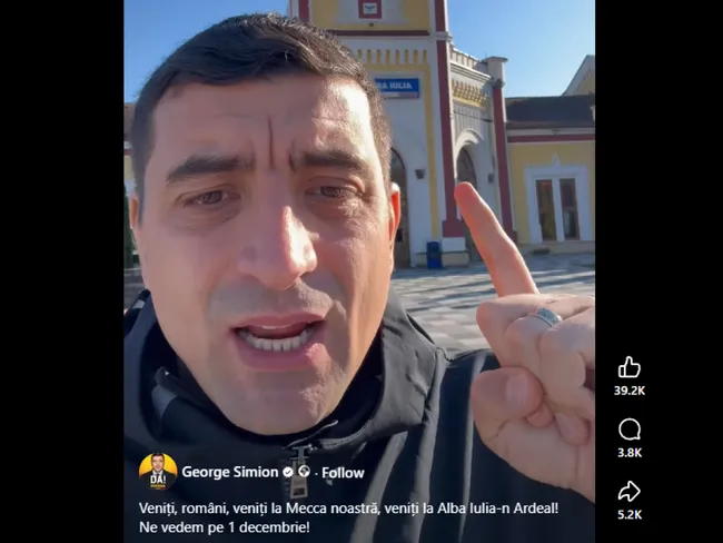 „Veniți, români, veniți la Mecca noastră, veniți la Alba Iulia-n Ardeal”, a scris Simion pe Facebook.