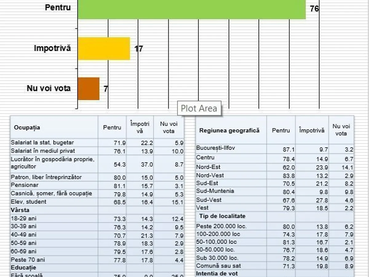 Circa 69% din alegători sunt favorabili unirii cu Republica Moldova, în timp ce 16% se opun unui asemenea proiect.
