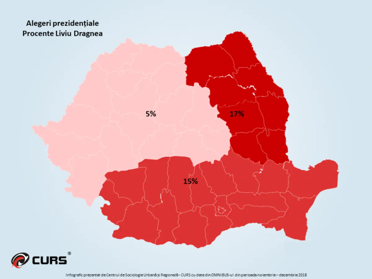 Centrul de Sociologie Urbană și Regională (CURS) a dat publicității o serie de hărți electorale, preluate de Revista 22, referitoare la intenția de vot pentru posibilii candidați la alegerile prezidențiale.